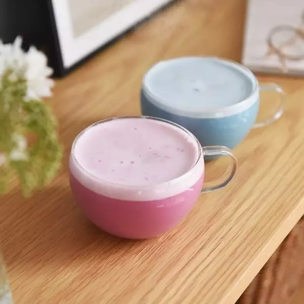 人気の「バタフライピー」を使った青いラテと、「ハイビスカス」を使った赤いラテ。華やかなお茶はおもてなし用としてはもちろん、ギフトとしても喜ばれそうです。