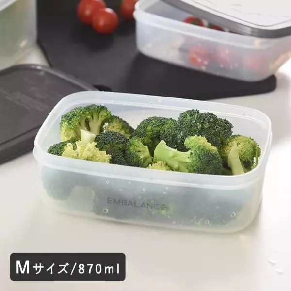 入れておくだけで食材の鮮度を保ってくれる、エンバランス レクタングルコンテナMサイズ。