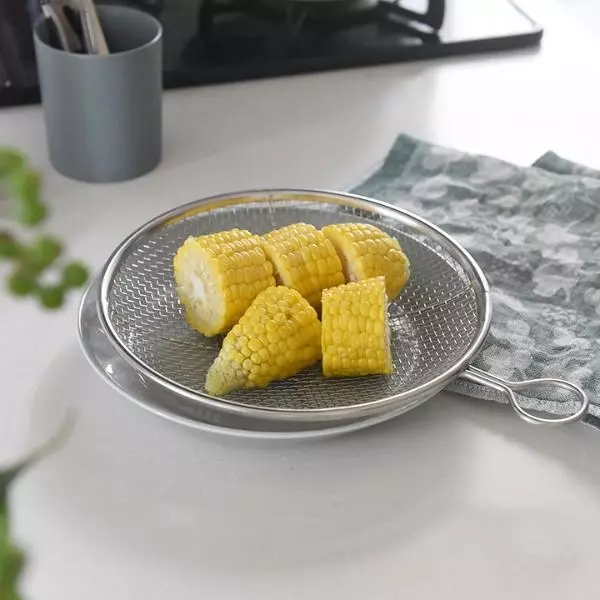 野菜の水洗いはもちろん、浅型で食材を安定して受け止めてくれるから、水切り・油切りにも◎。また、干し野菜作りや・一夜干しなど、幅広い用途で使えるリング付き盆ザルです。