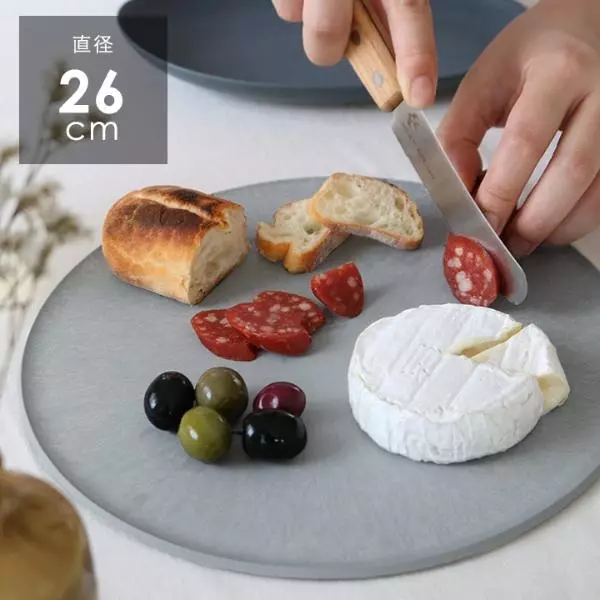まな板として使える素材なのに、そのままお皿としても絵になるデザインの「CHOPLATE(チョップレート)」。こちらはピザやホールケーキなどのカットからサーブまでできる、大きめの26cmサイズです。