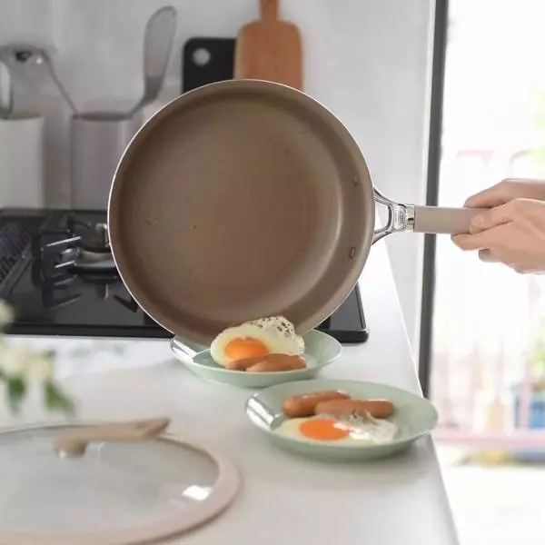 目玉焼きもスルッとお皿に流れ、お肉や餃子を調理してもこびりつきにくい!毎日の台所仕事をぐっと楽にしてくれるツルすべフライパン、evercook(エバークック)シリーズ。