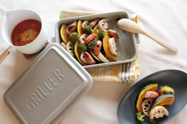 グリラーは陶器製ダッチオーブンといわれるほど、蒸し焼き料理が得意。フタをすることで食材にじっくり熱が伝わり、さらに陶器の遠赤外線効果で食材のおいしさを余すことなく引き出します。