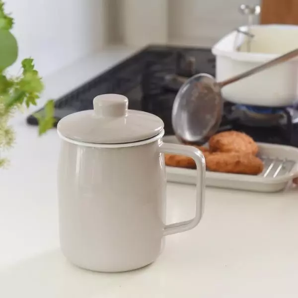 手軽に使えて収納もしやすい琺瑯製オイルポット。ステンレスフィルター付きなので、油をポットに移し替えると同時にろ過もOK。お手入れも食洗器OKで手軽に使えます。