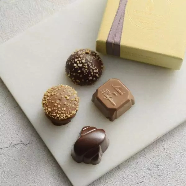 ベルギーのチョコアマンド ショコラ/chocolumbus チョコロンブスレートメーカー「Que pour vous (クプルブ)」からチョコレートの4粒入りアソートボックス。バレンタインやプチギフトにもおすすめです。