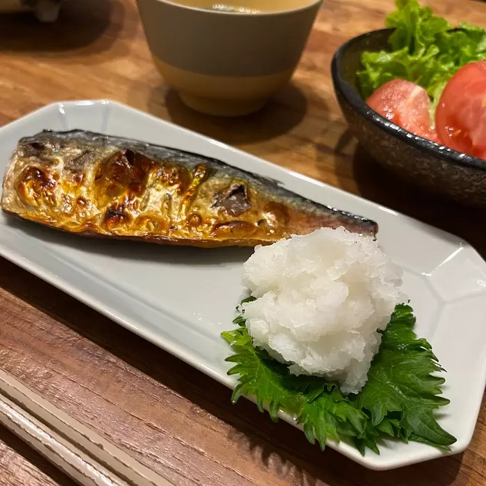 魚の盛り付け用にお迎えした長方皿。鯖の切り身を盛り付けてみました。