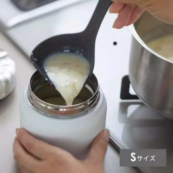 このSサイズのお玉、コンパクトですがそれなりに深さがあり、見た目よりしっかりすくえます。もうひと回り大きなお玉(一般的なMサイズ)も持っていますが、よく使うのは断然こっち。置き場所を取らず、作業スペースを少しでも広く使えるところもお気に入りポイントです。