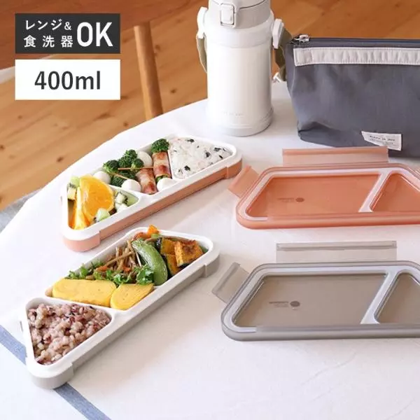 立てて持ち運んでも汁漏れしにくい、おにぎり型のお弁当箱です。型にごはんを詰めるだけで、あっという間におにぎりのできあがり。バッグに入れてもかさばらない薄型設計です。