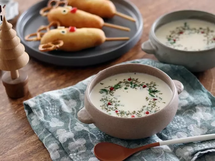 クリスマスの食卓彩る「トナカイアメリカンドッグ」と「リースのポタージュ」[PR]