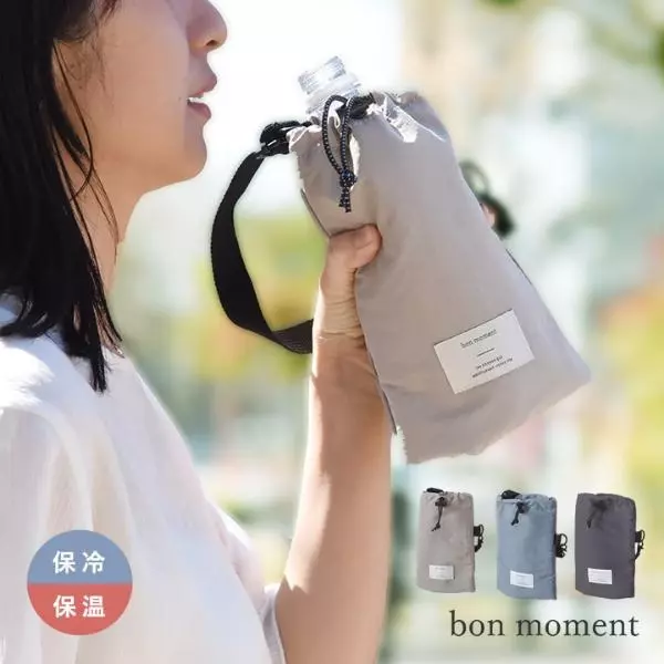 小ぶりなバッグでお出かけする日は、ペットボトルを“外付け”できると荷物がギュウギュウにならなくて便利ですよね。飲み物のお替わりも、新たに買ったボトル→空のボトルを入れ替えるだけですし、使用後は小さくペタンと畳んで持ち帰ればOK。家でも出先でもお邪魔にならない控え目存在感、それでいて保冷力もアリ。