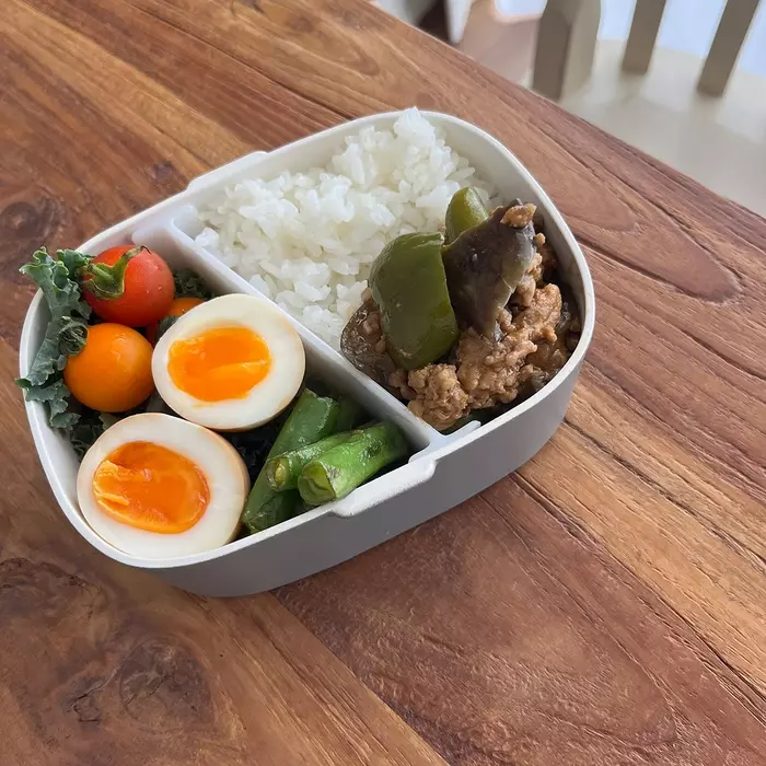 この日は麻婆茄子を丼のように食べたかったので、ごはんを多めにするために仕切りは真ん中に。