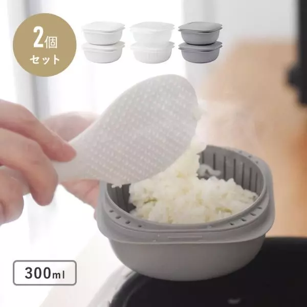 うつわとザルの二重構造で、レンチンすると蒸気が循環。まるで炊き立てを再現したような、艶感のあるふっくらごはんに仕上がります。スタッキング収納も可能な2個セットです。