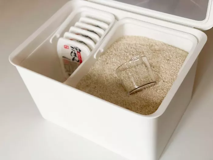 likeitの米びつは、ポリプロピレン製。キッチンで扱いやすい素材です。