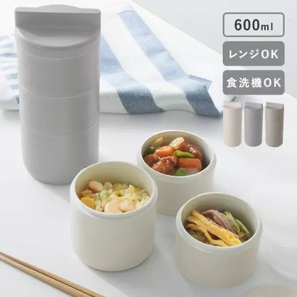 ⇒バッグに隙間に収まりやすい 3段 お弁当箱 ランチボックス 600ml/tutu