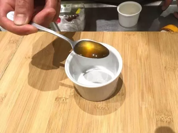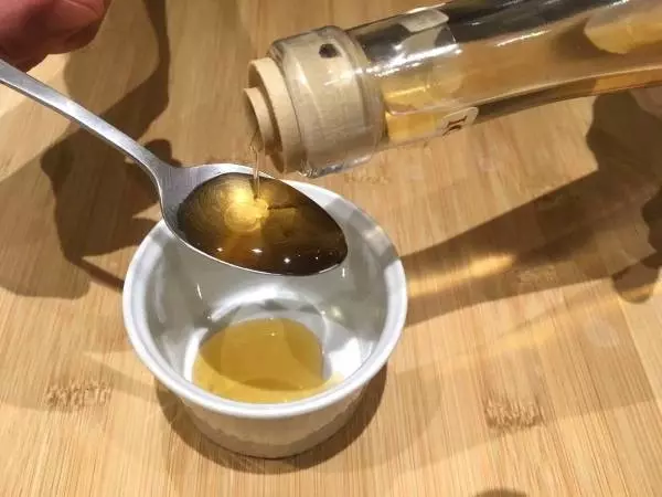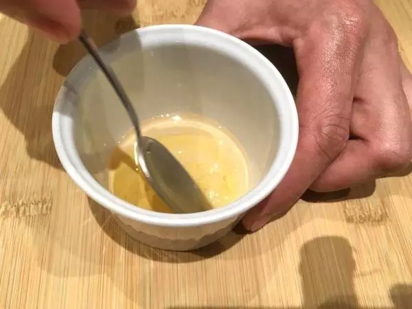 はちみつをホワイトバルサミコでのばすように混ぜ合わせます。