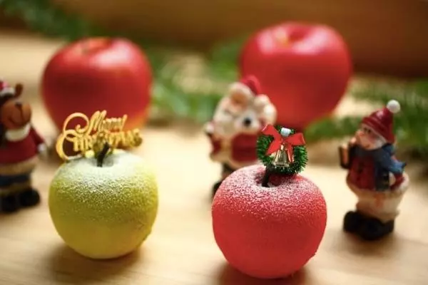 発売から好評の「原宿りんご」が、さらにフォトジェニックに。レッドとグリーンを並べたクリスマスカラーな彩りに、ホワイトパウダーとオーナメントをデコレート。