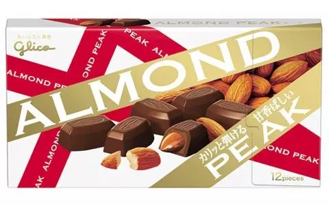 『アーモンドピーク』は"アーモンド感"が強く味わえるナッツチョコ。グリコ独自の"アメ焼きアーモンド製法"で仕上げたナッツは、かんだ瞬間カリッと弾ける食感で甘香ばしい旨みが口いっぱいに広がる。