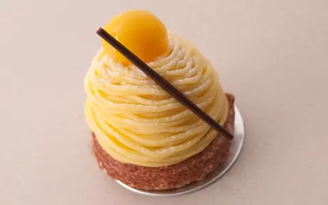 モンテ ビアンコ フレスコ ¥650昨年から好評の「アリュメット ポム」と「モンテ ビアンコ フレスコ」は、ペストリーシェフが特に おすすめするスイーツ。「アリュメット ポム」は、フランスの家庭的なパイ菓子で、旬の瑞々しいリンゴの素材を生かした一品。「モンテ ビアンコ フレスコ」は、和栗をつかい風味豊かなモンブランに仕上がっている。