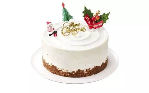 デザートにはクリスマスの主役、「クリスマス・マロンシフォンケーキ」を。マロンの風味と、上段と下段のシフォンに使用した2種類のクリームが非常に贅沢な一品だ。
