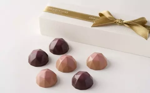 シャンパンジュレとシャンパンガナッシュがそれぞれ入った、「ミルク」「スイート」の2種類。チョコレートの甘さの中にシャンパンの魅惑的な余韻が残る、大人のスイーツとなっている。