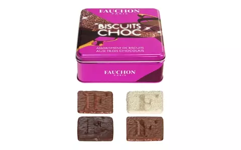 新登場『クリスマスビスケット』は、“F”のデザイン入りの、チョコレート、キャラメル、バニラココナッツ、ヘーゼルナッツ風味のビスケット4種の詰合せ。各4個入りで計16個入り。