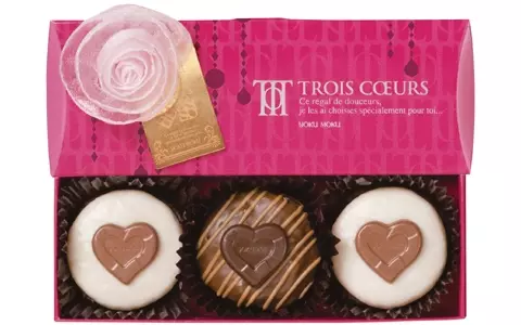 スイートチョコレート×マカダミアナッツのクッキーと、ホワイトチョコレートのクッキーの2種類の詰め合わせ、ハートのモチーフがかわいい「トロワ クール」。