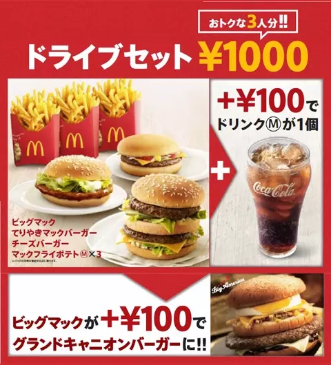 3人分が¥1,000の超お得なセット「ドライブセット」の発売が、ドライブスルー併設のマクドナルドの店舗にて、2012年1月13日(金)より期間限定で行われている。
