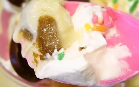 このフレンチトーストアイス、もちろんそのままでもおいしいが、今回サンデーについてきたホイップクリームと一緒に食べると、ふわふわなホイップによってブレッドピースのぱさぱさ感が軽減され、さらに食べやすくなる。また、アイスのメープル味とホイップが良く合っておりこの組み合わせ、すごく美味しい。