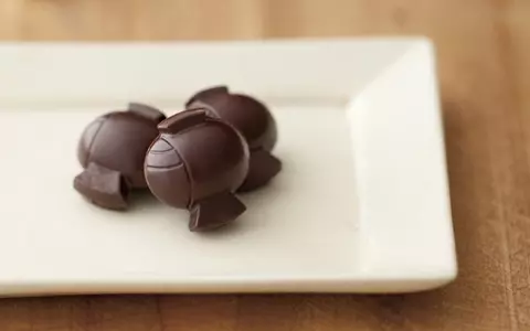 こづちチョコ純米酒を使ったガナッシュ入りのチョコレート。お酒本来の風味をいかすために脂肪分を抑え、なめらかですっきりとした味わいに。