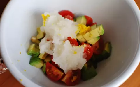 暴飲暴食に歯止めをかけたい人へ、アボトマおろし和えだし茶漬けの作り方