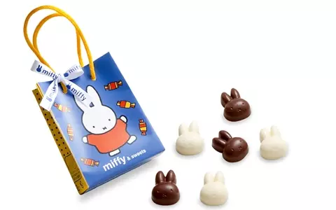 元は1955年、ディック・ブルーナ氏の絵本「NIJNTJE」(ナインチェ)に登場。日本では1964年に「ちいさなうさこちゃん」(福音館書店刊)が刊行され一躍人気者になったミッフィー。オランダではナインチェ(うさちゃんという意味)、日本では「うさこちゃん」の名前でも親しまれているミッフィーのチョコレートで、童話の気分を味わってみよう。