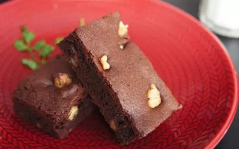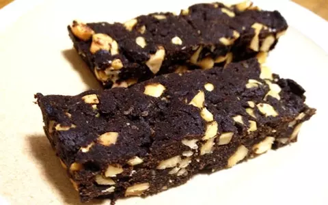 チョコレートではなく、イナゴ豆を粉末状にしたキャロブパウダーで作る、なんちゃってチョコレートブラウニー。カロリーが気になる人はこれで。