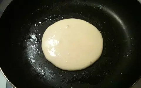 5.熱くなったら、弱火にしてお玉1杯分の生地を高い位置から流仕込む。
