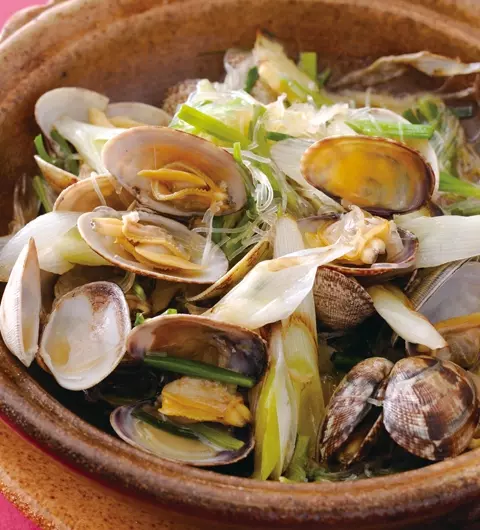 アサリと春雨のネギ・生姜土鍋煮込み ¥2,100 ※2~3名様、サービス料10%別途