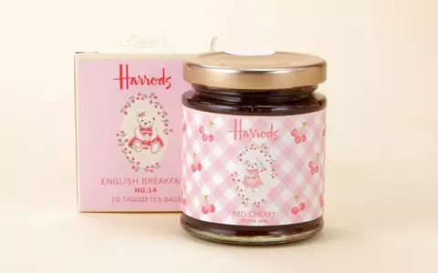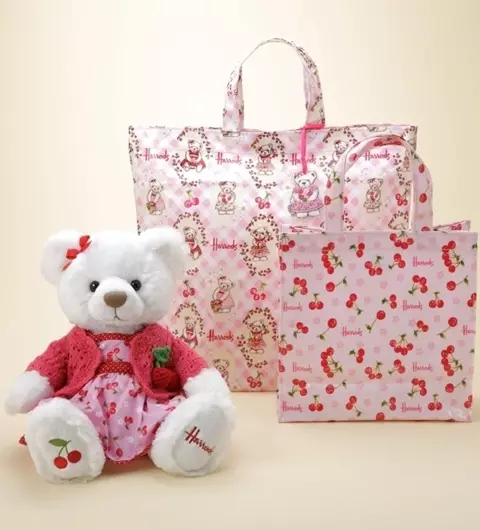 ハロッズの今年のテーマはチェリー。「ハロッズ フローラルコレクション2012」として、定番の紅茶とジャムと共に、チェリーベア、ビニールトートバッグ2柄といったオリジナルグッズが店頭に登場する。