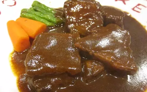 先代シェフが東京出身でホテルで修業をしていたため、話も味のセンスも合う、と熱海文人たちの間で評判になったのだそう。また、旅館に長く宿泊している人たちが魚料理以外のものを食べたくて、と訪れることも多かったそう。1週間かけてソースを仕込むビーフシチューやあわびのコキュールは、ほかではいただけない、熱海名物。