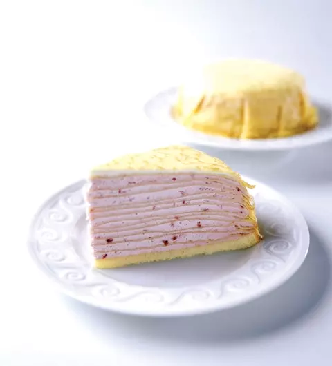 薄く焼いたクレープ生地になめらかな苺クリームを塗り何層にも重ねた「いちごのミル・クレープ」。