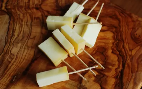 作り方1.チーズは7~9gの角棒に切り、ひとつづつ爪楊枝を刺しておく。