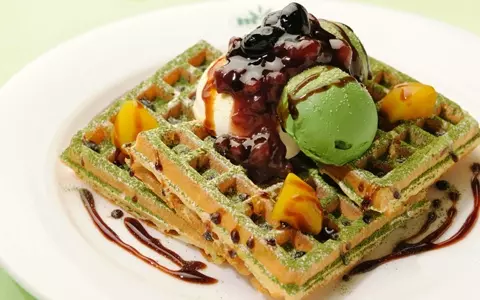 ※6月下旬まで発売渋みを残した濃厚な味わいの抹茶アイスと、ホイップクリームをON。さらに栗、黒豆、国産あずきをたっぷりトッピングし、最後に黒蜜ときなこで仕上げた、和スイーツの魅力をつめこんだ、うららかな春のひとときにふさわしい上品なワッフル。
