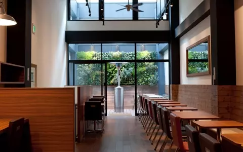 「MOSDO(モスド)」は「商品やサービスを通じて、日常生活における憩いやくつろぎをご提供する場」をコンセプトとした、モスバーガー&ミスタードーナツのコラボレーションブランド。2010年4月に第1号店「MOSDO イオンモール広島府中店」、2011 年9月に第2号店「MOSDO 京都河原町通りショップ」、そして今回待望の関東1号店「MOSDO 恵比寿店」のオープンに至った。