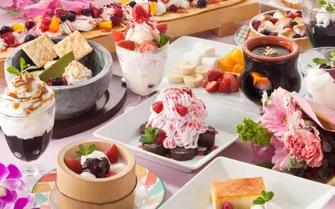 いちごのショコラロールモンブラン、サバラン風フレンチトースト、イチゴの白玉クリームあんみつ、チョコレートフォンデュ、チョコクリームフォンデュ、生キャラメルフォンデュ、ミックスベリーピザ、ミックスベリーピザハーフ、ベイクド・マシュマロ、イチゴパフェ、杏仁豆腐、コーヒーゼリー、ミルクアイス、シロクマアイス、カタラーナ、キャラメルパフェ