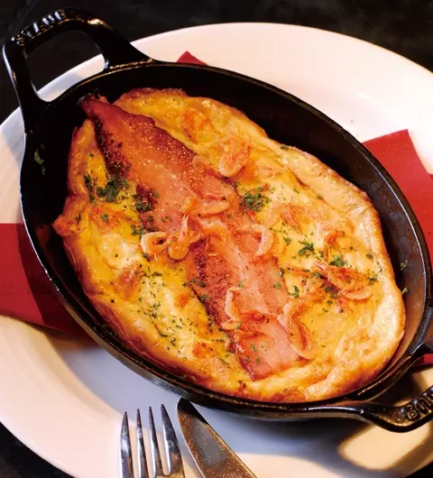 桜海老とベーコンのオムレツ鉄板焼 ¥900直輸入のベルギービールが楽しめるビアカフェからは、旬の桜海老を味わえる絶品オムレツがディナー限定で登場。桜海老とベーコンの旨みをアツアツのオムレツに閉じ込めた、ビールともよく合う絶品メニュー。具材と卵の香ばしいハーモニーをご堪能あれ。