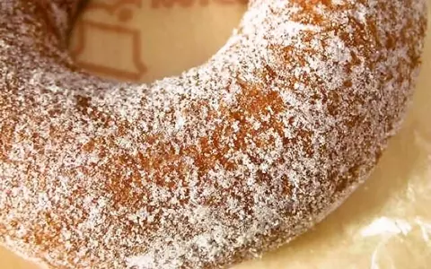 ホッとリングの中でも一番ベーシックなタイプ。真っ白なパウダー状の砂糖がたっぷりとドーナツにまぶされている。