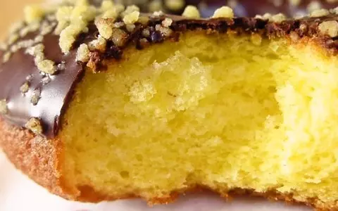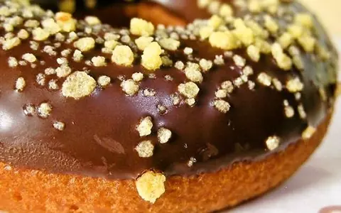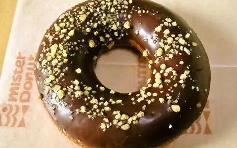 基本のホッとリングの上半分にチョコレートコーティングがされており、更にその上にはミスドの定番「ゴールデンチョコレート」でお馴染のゴールデントッピングがされている。