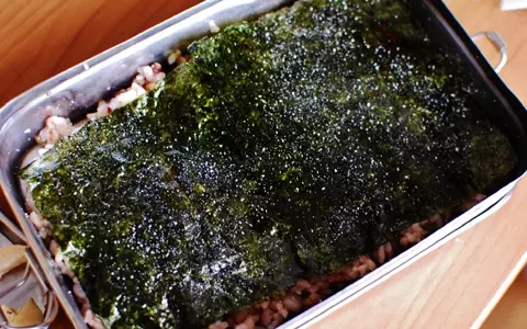 5.ある程度冷めたご飯の上に韓国海苔をのせる