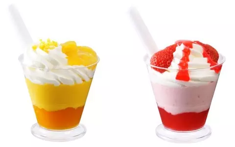なめらかゼリー&ムースにナタデココと生クリーム、特製ソースとフルーツを重ねたカップデザート。爽やかな酸味がトロピカルな「マンゴー」、甘酸っぱい「いちご」の2種類が登場。専用ストローでぐるぐるまぜれば、それぞれの味わいが調和したまろやかな口どけに。ナタデココの食感のアクセントも楽しめる。