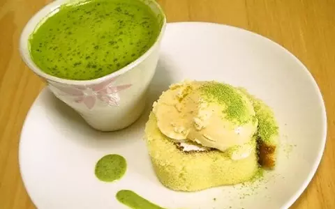 用意した材料はロールケーキ、バニラアイス、スティック抹茶ラテの3つ。どれもスーパーで買える商品だ。総額は約300円くらい。今回目指すは春を感じられる和っぽいロールケーキ。では早速アレンジ開始!