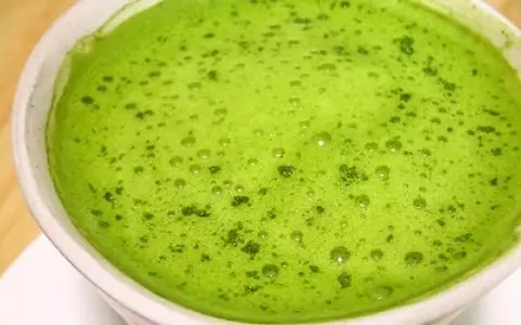 最後に残ったラテの粉にお湯を注ぎ抹茶ラテを作成。ここまでで使ったラテの粉は少量なのでカップにたっぷりな量の抹茶ラテができる。