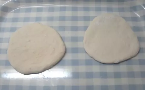 3.生地を手のひらで軽く叩き、のばします。