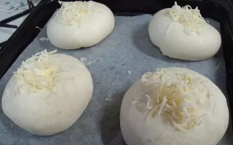 4.下準備しておいたネギチーズの具材をン生地に包みこむ。鉄板にのせ、温度28℃、湿度75%で約50分発酵させる。※発酵室がない場合は、発泡スチロールに湯煎を入れるなどして発酵できる環境をつくります。