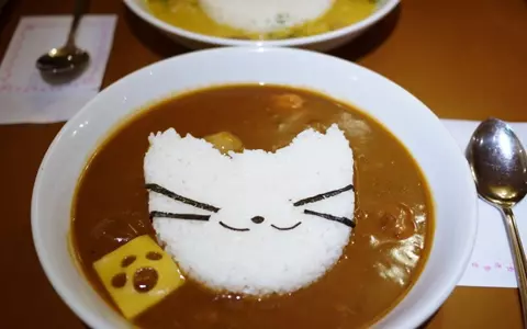まず、ライスの形がにゃんこ…!隣に添えられたチーズの肉球も愛らしい。ご飯の量は控えめなので、女子や食べ歩きたい人にもぴったりだ。